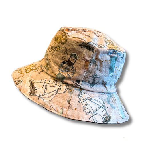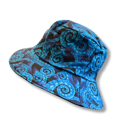 Teen / Mens Reversible Bucket Hat - beach / fishing hat - octopus