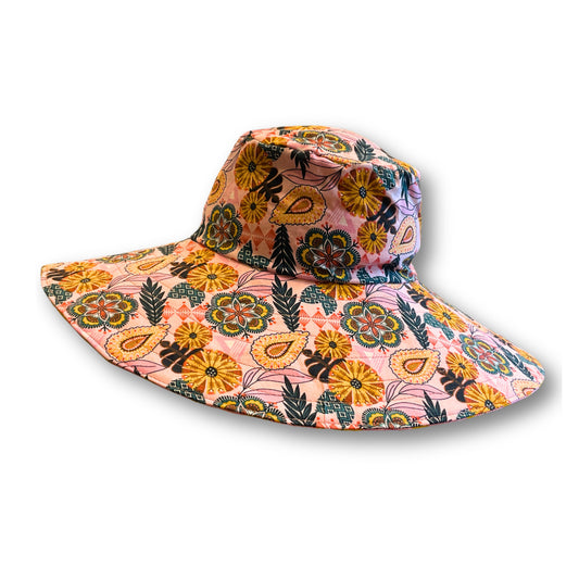 Wide Brim Reversible Sun Hat, Ladies / Girls sizes avail - retro floral