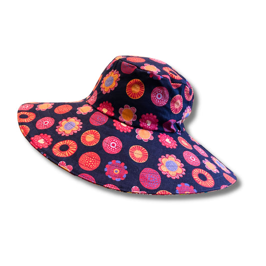 Reversible Sun Hat - Ladies & Girls sizes - retro flowers