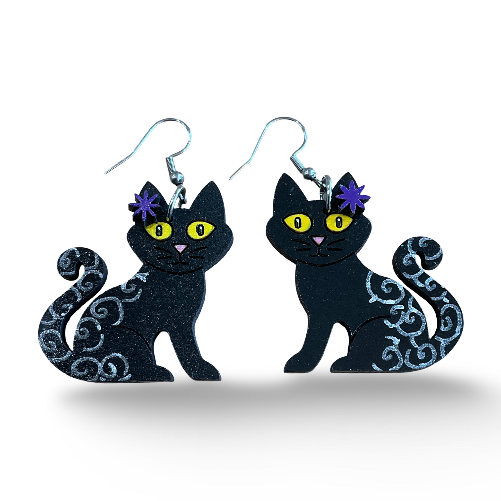 Black kitten / cat wooden earrings, Halloween