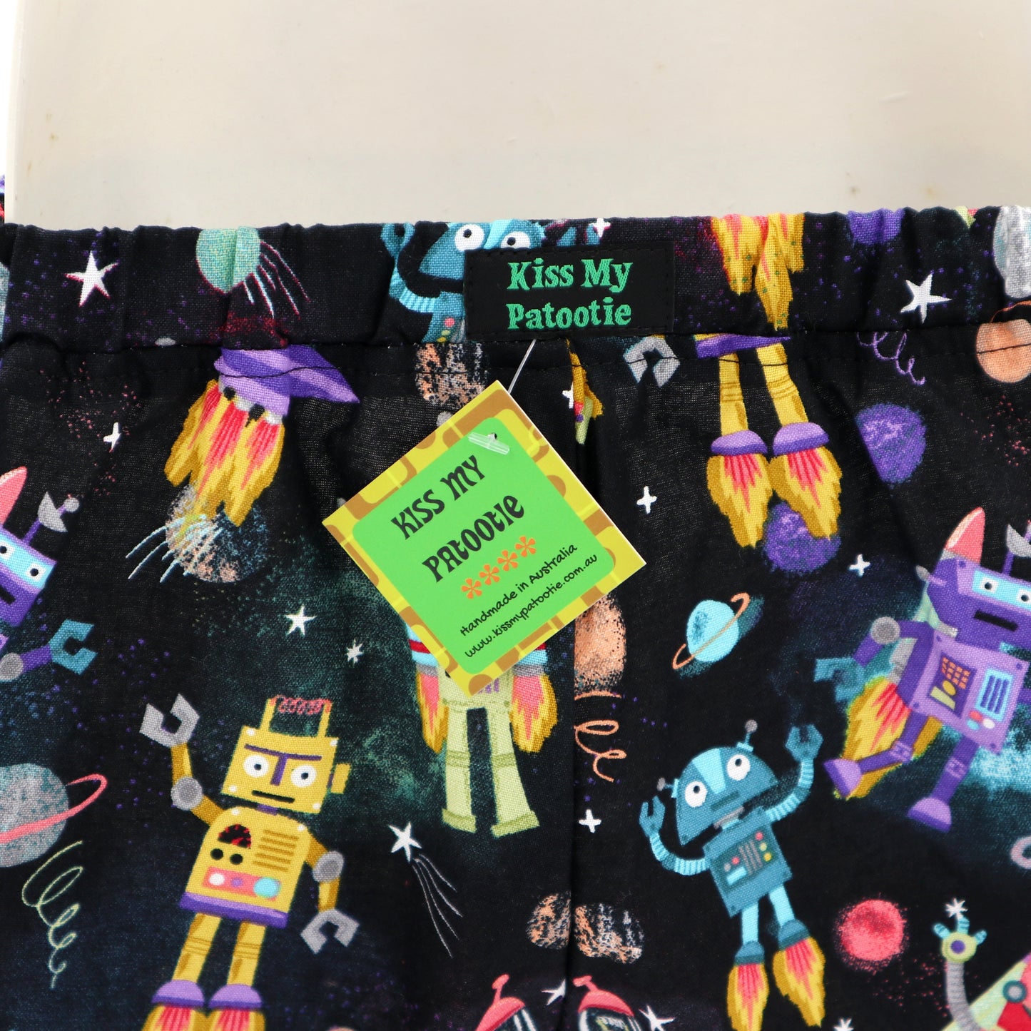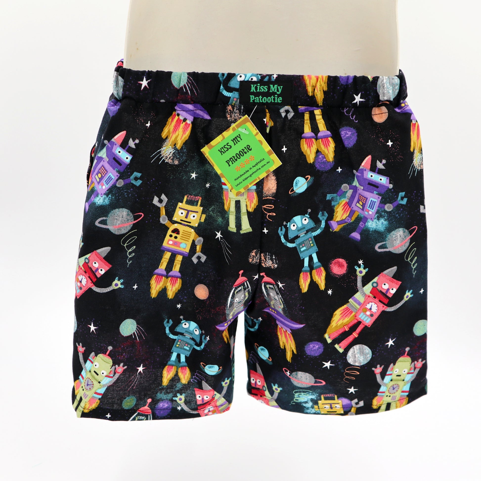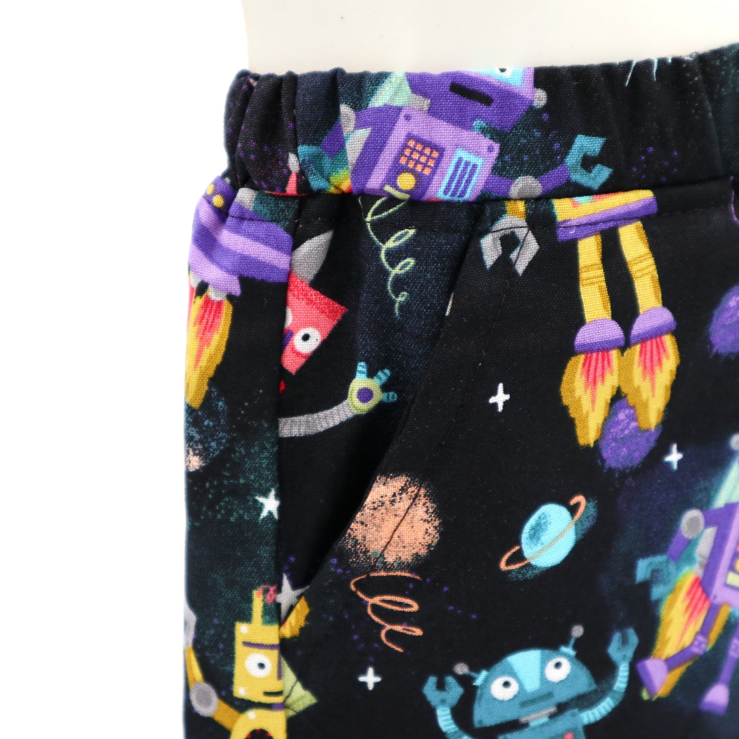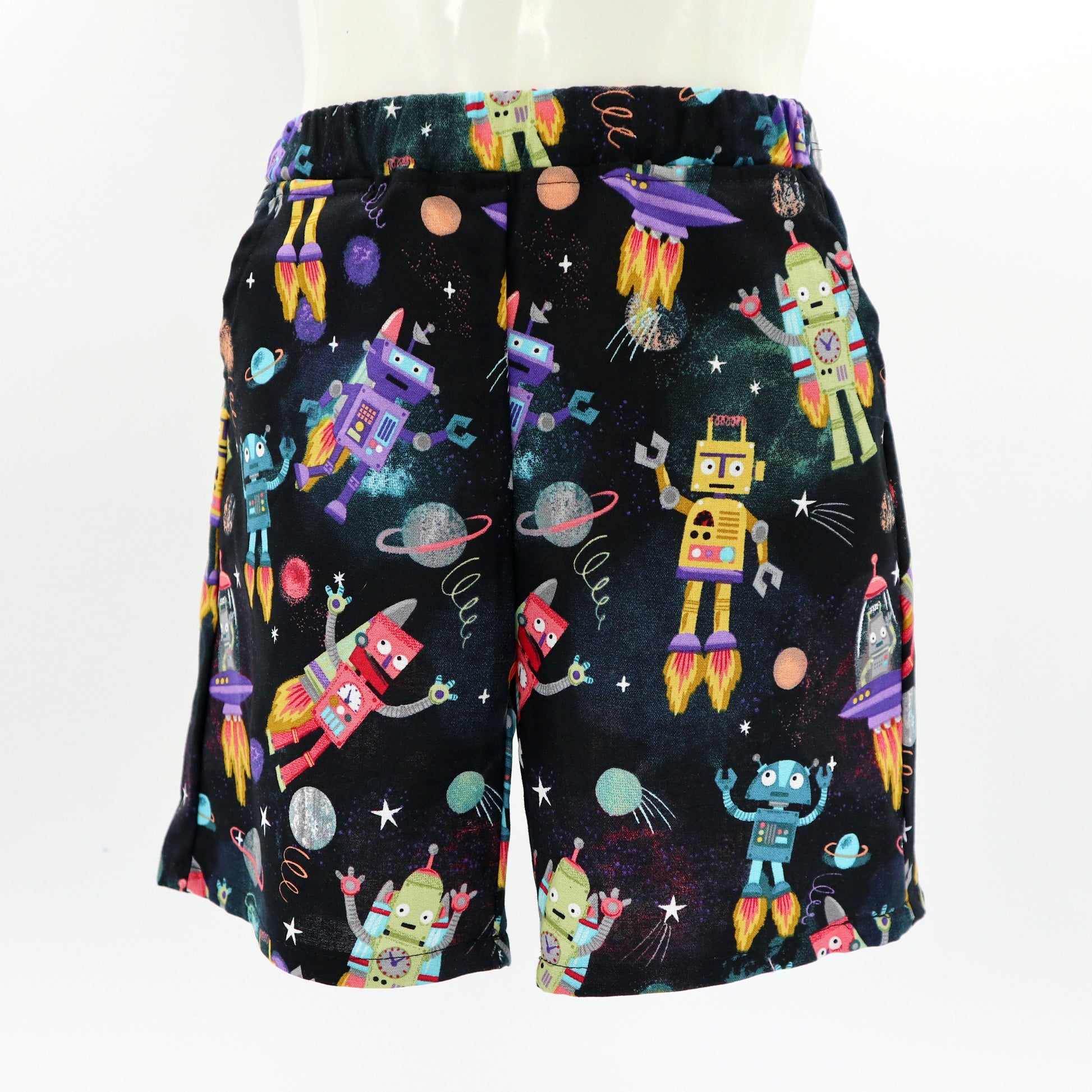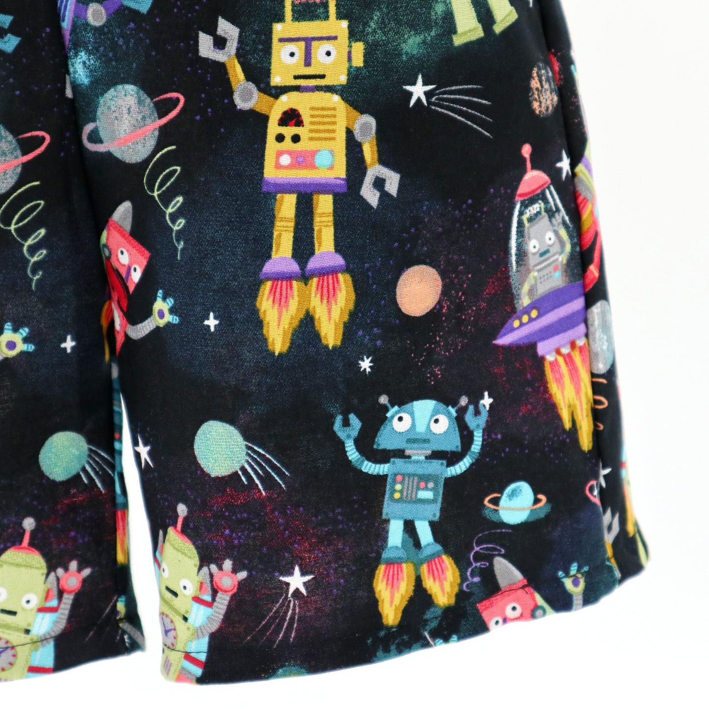 Kids shorts with pockets - sizes 000 to 6 - space robots