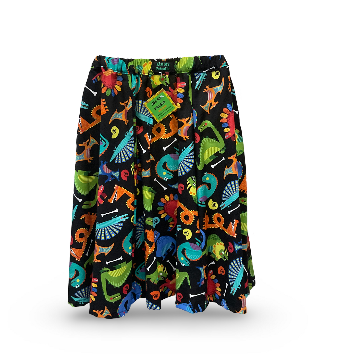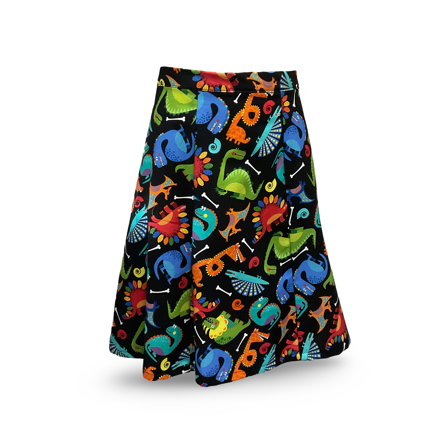 This vintage style ladies A-line skirt is made from high quality 100% cotton fabric with a cute monster print.