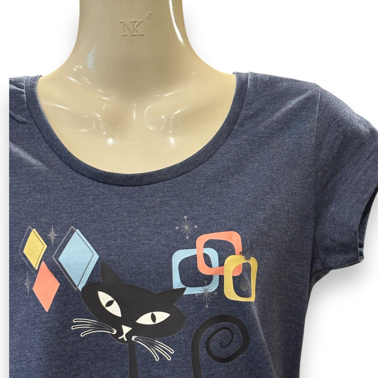 I printed this t-shirt using a professionally printed transfer on a 165-170 gsm, 100% combed super-fine cotton t-shirt. It has a long body with a scoop neckline and is slim fitting. If you prefer your t-shirts to be a bit looser, just choose the next size up.