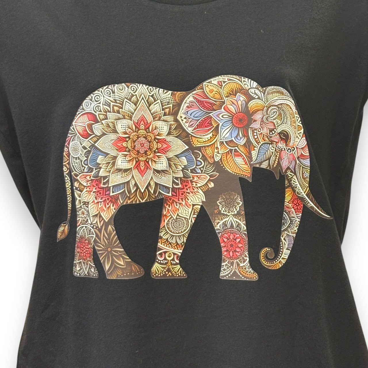 I printed this t-shirt using a professionally printed transfer on a 165-170 gsm, 100% combed super-fine cotton t-shirt. It has a long body with a scoop neckline and is slim fitting. If you prefer your t-shirts to be a bit looser, just choose the next size up.