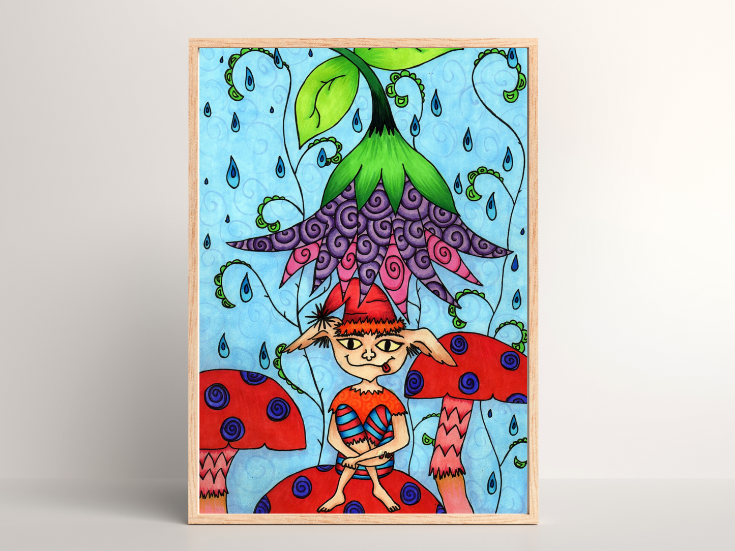 This printable elf and mushroom garden picture will surely add an exciting touch to any child's room. With a PDF file, it's convenient for parents to print it at home or take it to a professional printing service for a poster-sized print. It's great that it offers flexibility in sizing, allowing it to fit perfectly into any space.