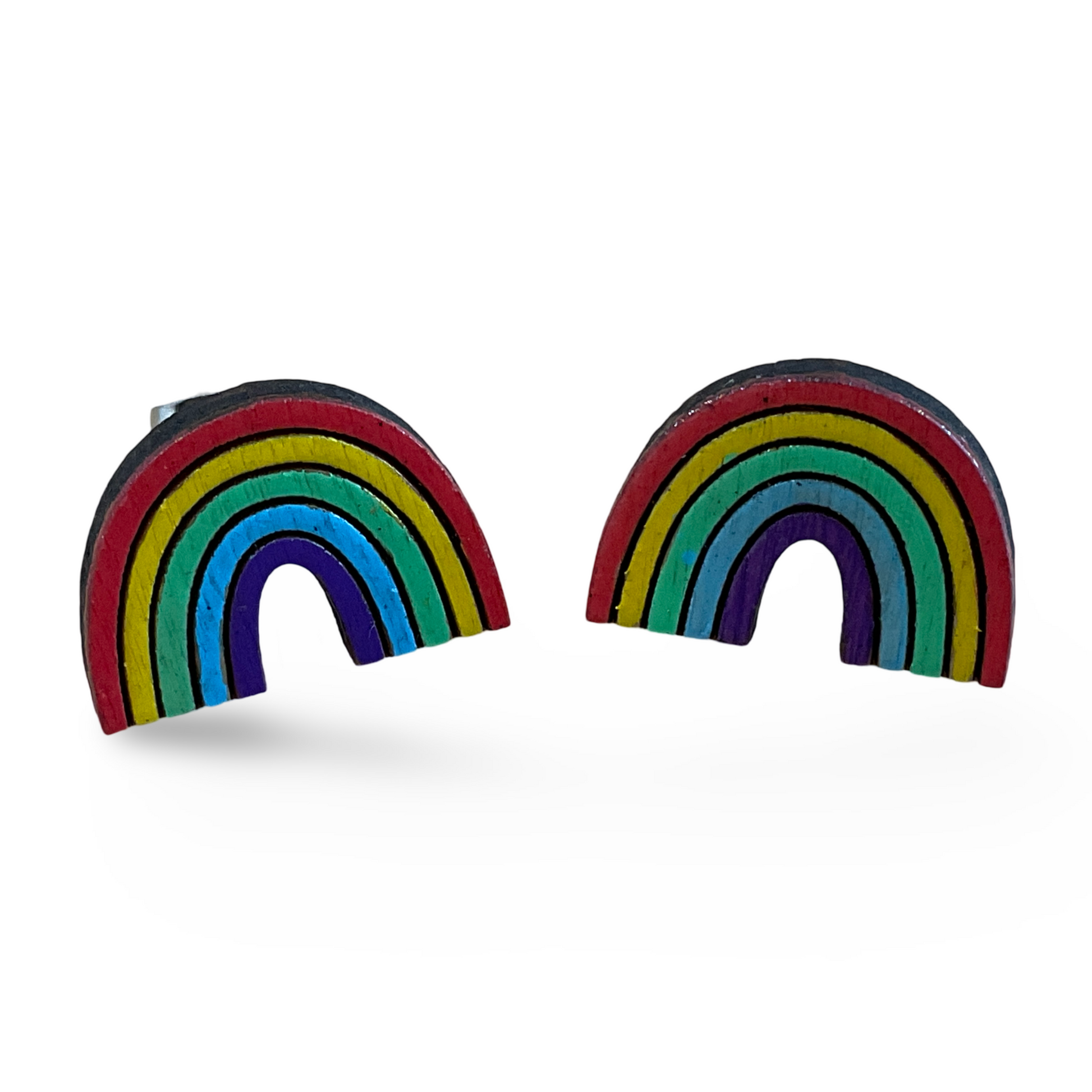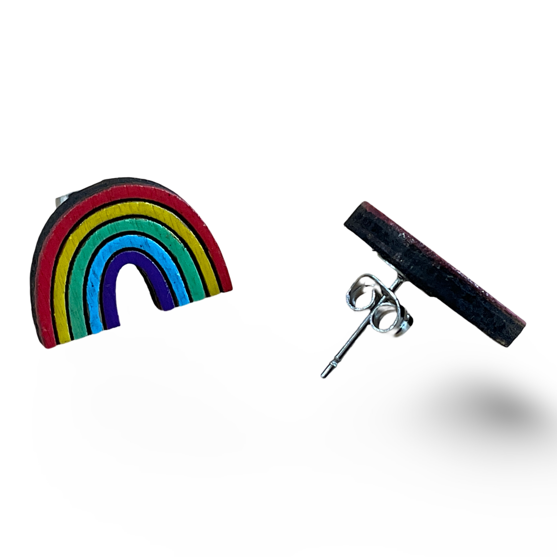Rainbow / pride studs - wooden, hand painted earrings LBGTQ