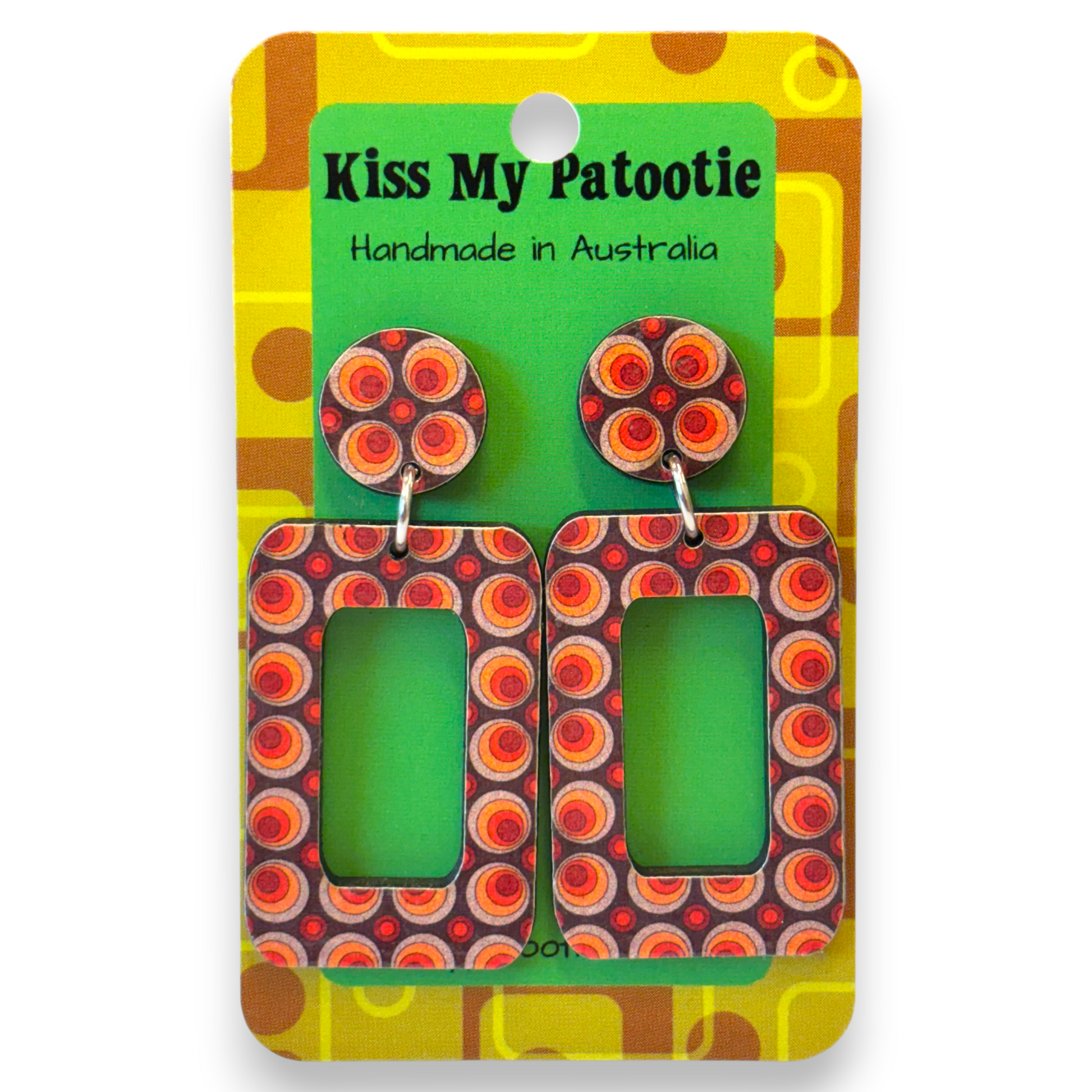 These earrings are laser cut from sustainable basswood. The design has been printed directly onto the wood before it has been cut.