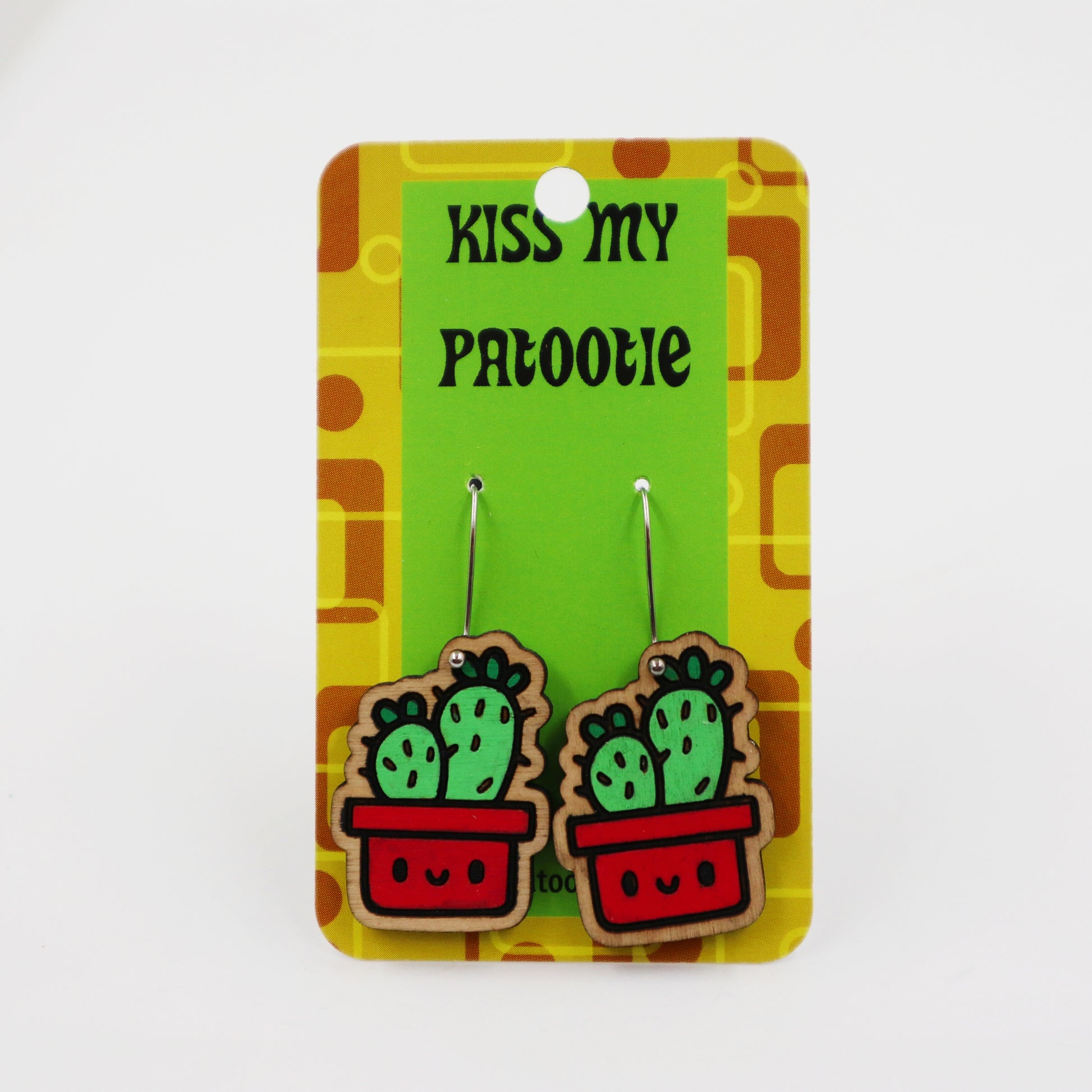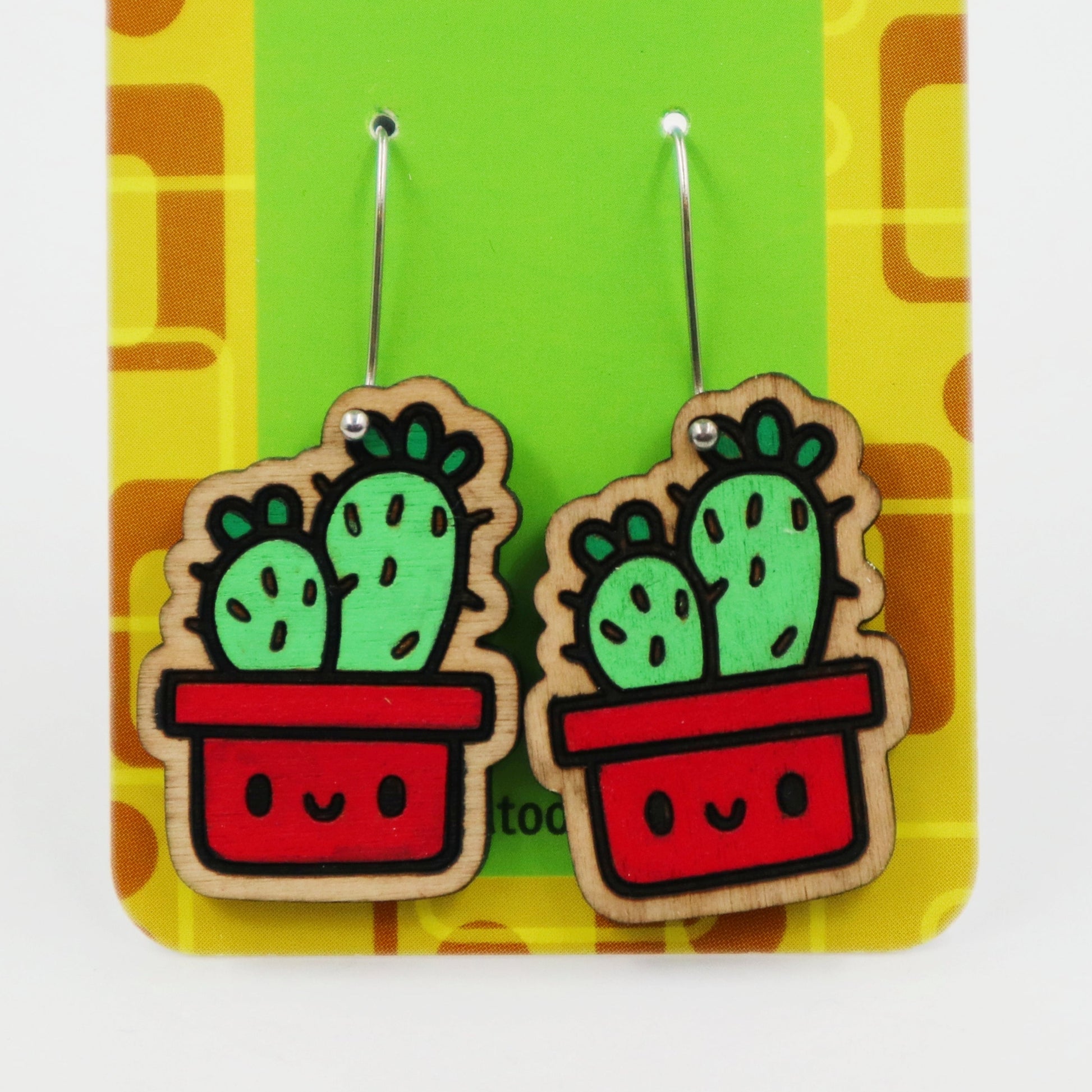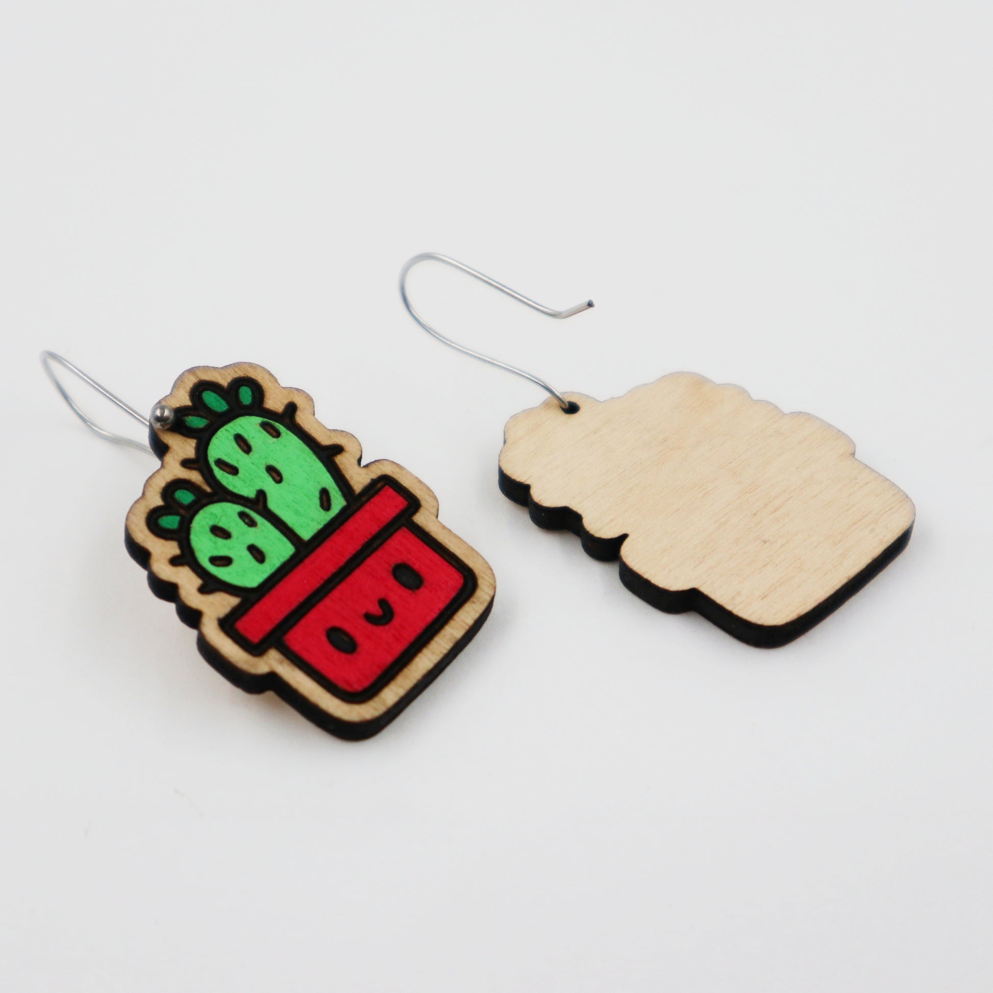 Laser cut using quality wood and hand painted. The ear wires are surgical steel which is good for sensitive ears and the stoppers on the back are latex free. They are 3.5cm at the widest / longest point, not inc the hook.